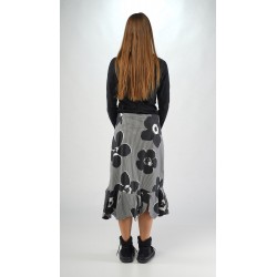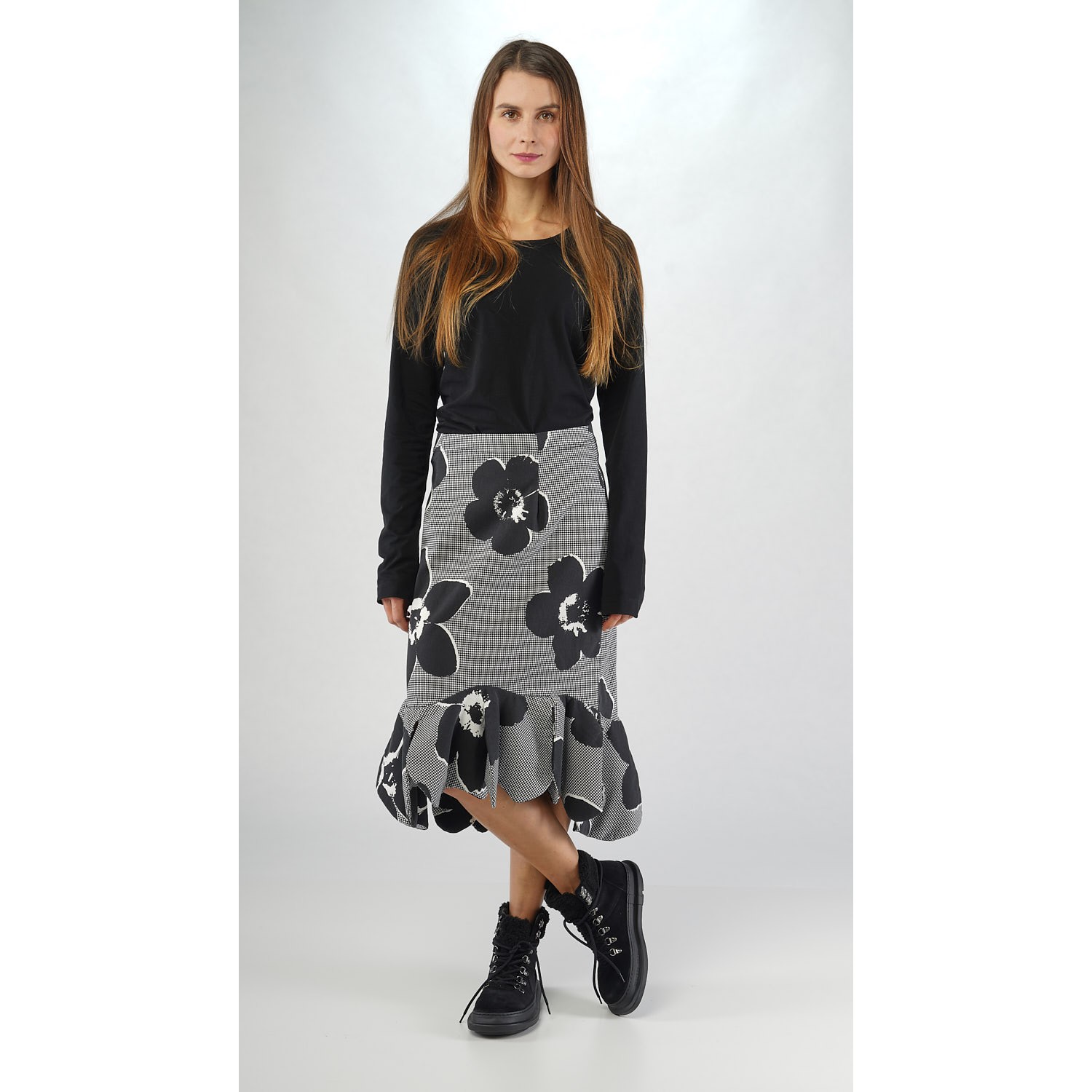 Rundholz Black Label slip-in shape, double layer techno stretch skirt with flower shaped hem, elastic waistband and flower print.