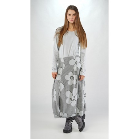 The skirt is shown in the style dark grey print but is only available in the styles rose print and black print, as shown on the other detail photos.