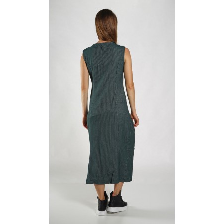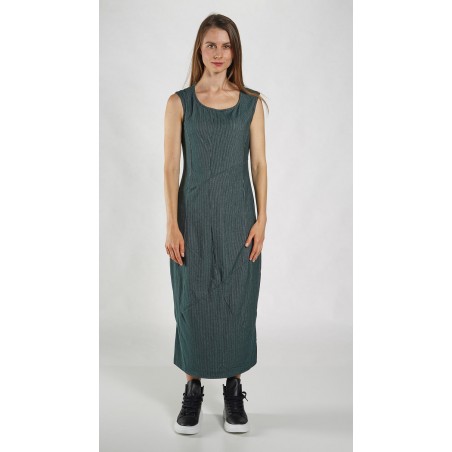 Rundholz Black Label banana shaped, sleeveless dress with subtle stripes, dividing seams and a round neck.