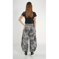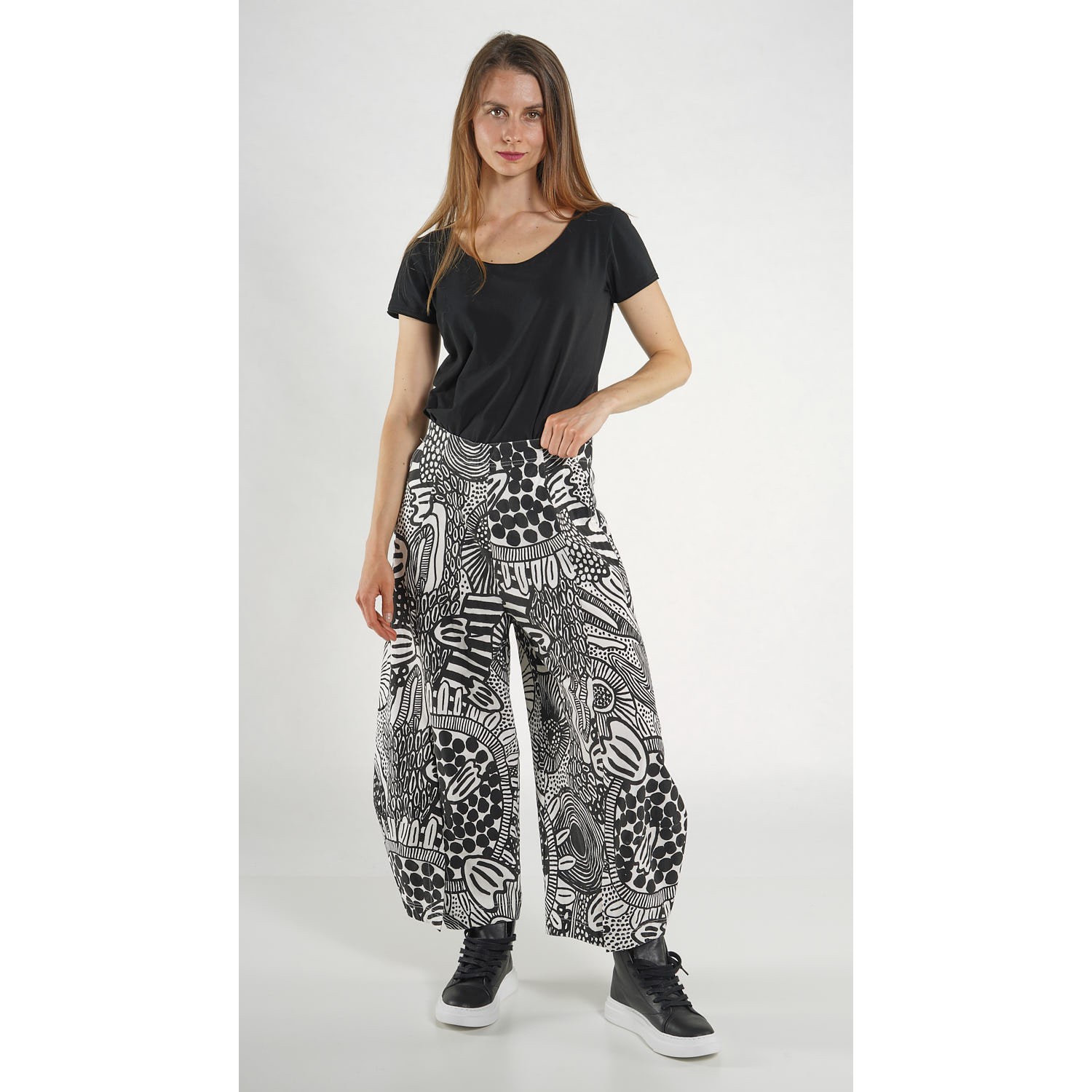 The trousers are available in black print, as shown.