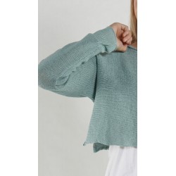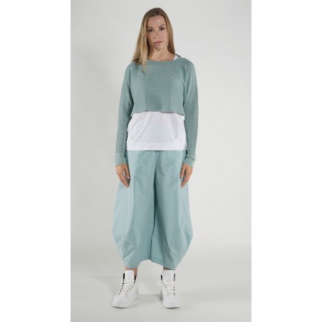 Rundholz Black Label straight, fitted, short linen/cotton pullover with long raglan sleeves, rolling edges and a round neck with a slit.