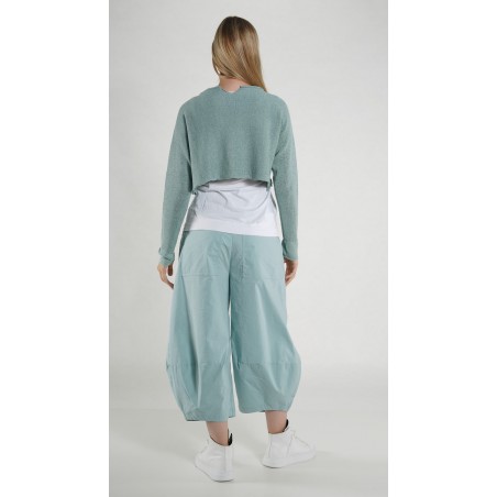 The pullover is shown in the color mint, but is also available in the colors grass and black, as shown on the detail photo of the other pullovers.