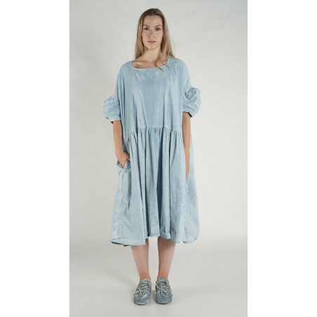The dress is shown in the style sky fog, but it's only still available in the style linen fog, as shown by the other model.