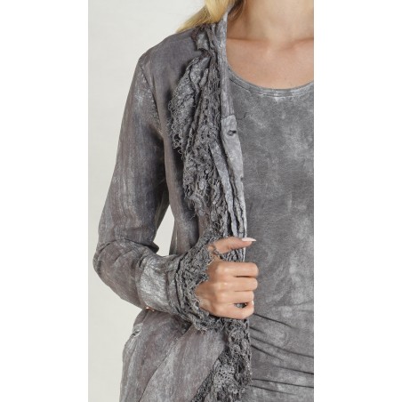 Rundholz DIP oversized, viscose stretch dress with a ruffle section, short crinkled sleeves and a round neck.