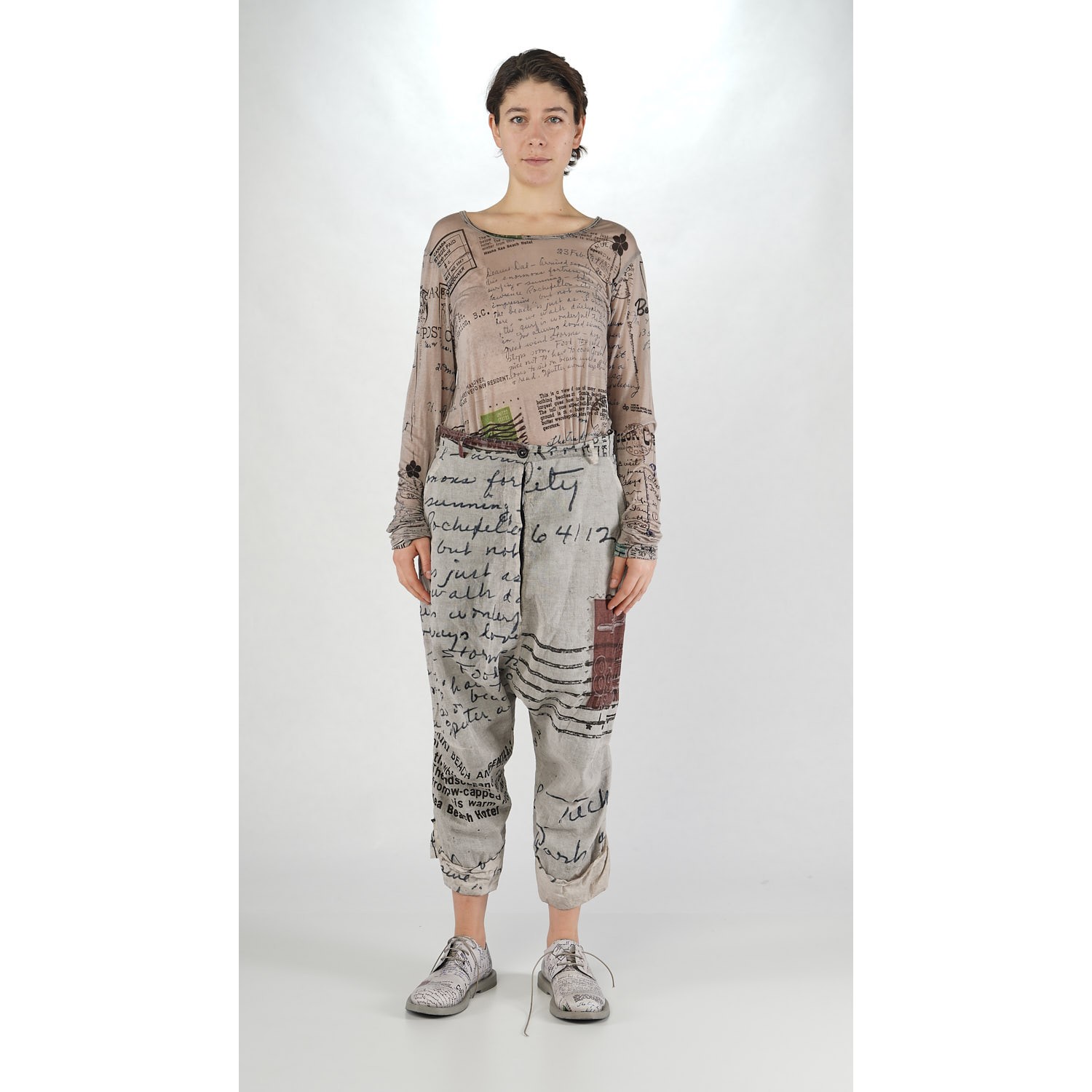 Rundholz DIP cotton voile, baggy trousers with a wrinkled look in the style backside print.