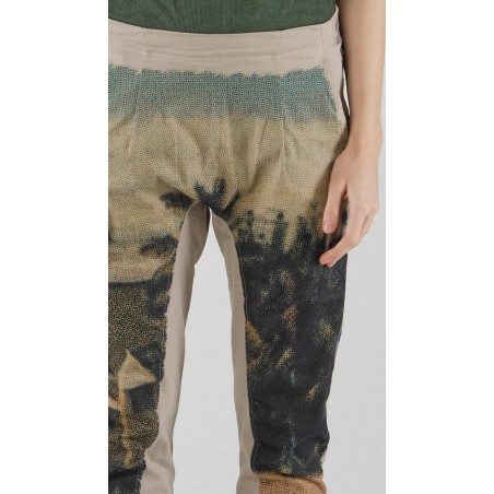 Rundholz DIP straight, slim shaped, cotton stretch trousers with digital scene print.