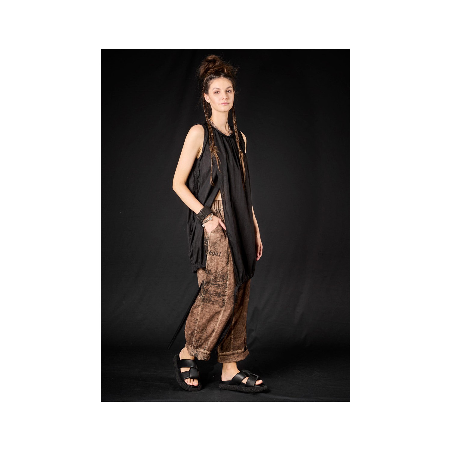 Studio B3 MIRRO double-layered, lightweight cotton volie trousers with slightly dropped crotch, an elastic waist and side pockets.