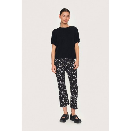 Bitte Kai Rand rekbare zwarte broek met ivoren vlekken.