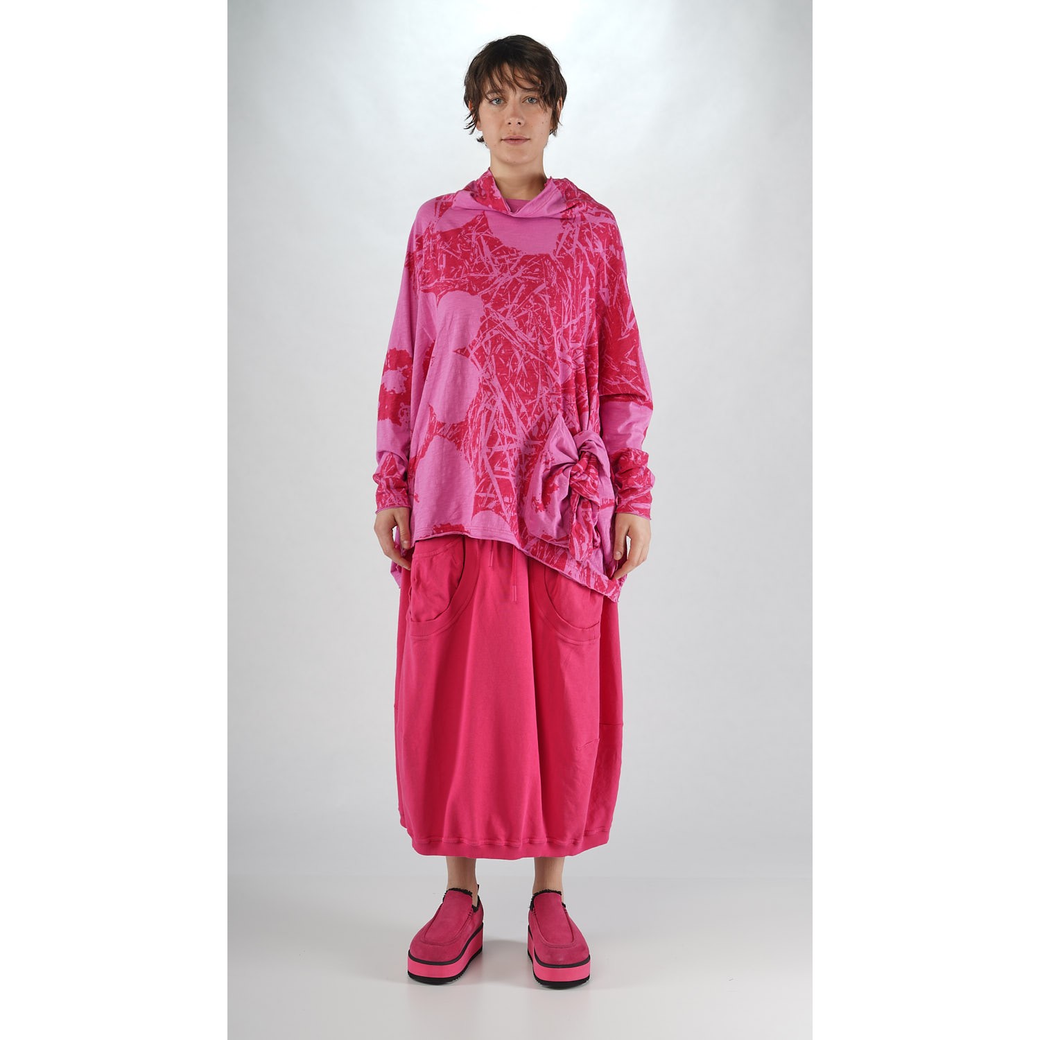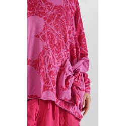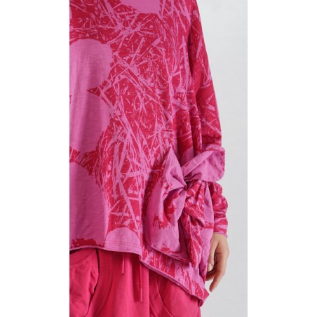 Rundholz Black Label katoenen slub jersey, oversized, asymmetrisch T-shirt met subtiele bloemenprint, raglanmouwen, een afgezette kraag, en een speciale grote zak op de voorkant.