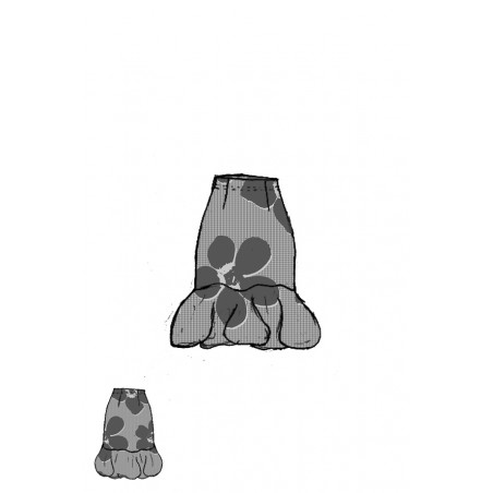 Rundholz Black Label slip-in model, dubbellaagse techno stretch rok met bloemvormige zoom, elastische tailleband en bloemenprint.