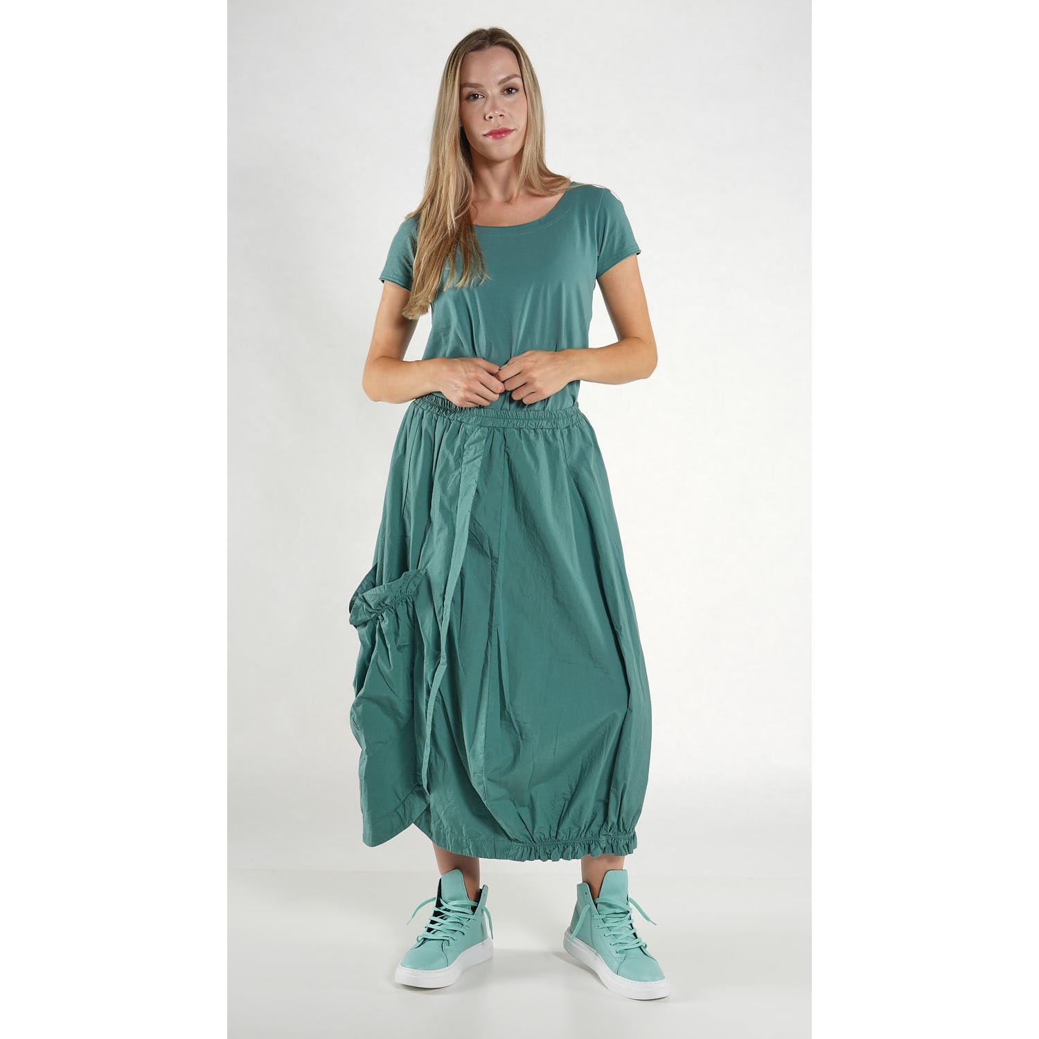 De rok is verkrijgbaar in de kleur grass, zoals afgebeeld.