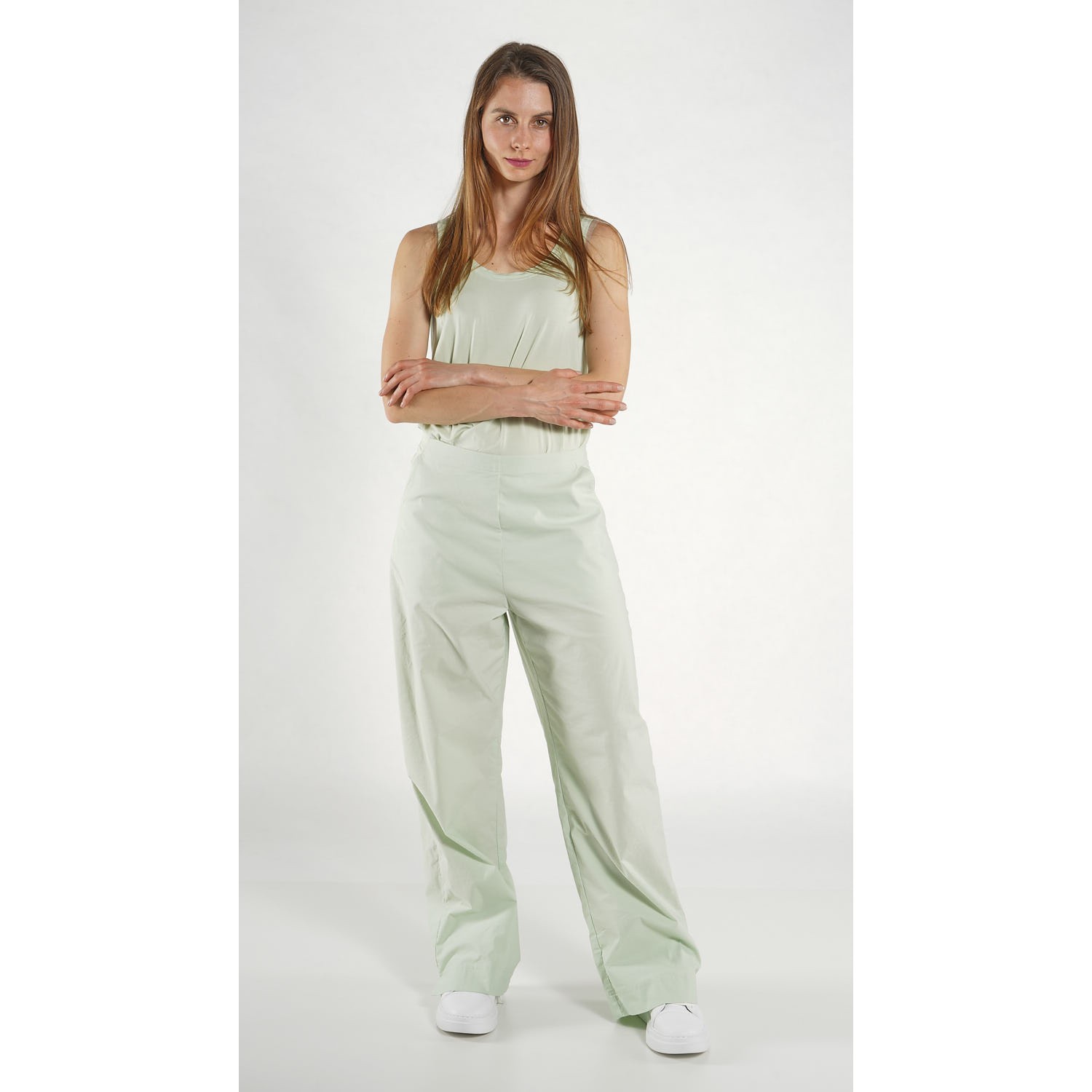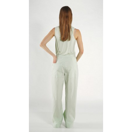 De broek wordt getoond in de kleur lime, maar is alleen verkrijgbaar in de kleur tree, zoals te zien is op de detailfoto van de andere broek.