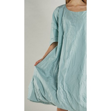 De blouse is afgebeeld in de stijl grass poplin print, maar is alleen nog verkrijgbaar in de stijl mint poplin print, zoals te zien op de detailfoto van de jurk.