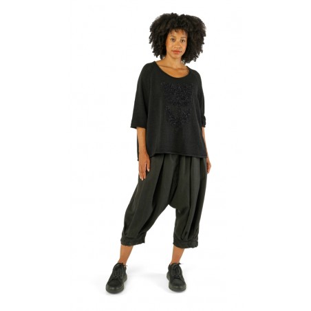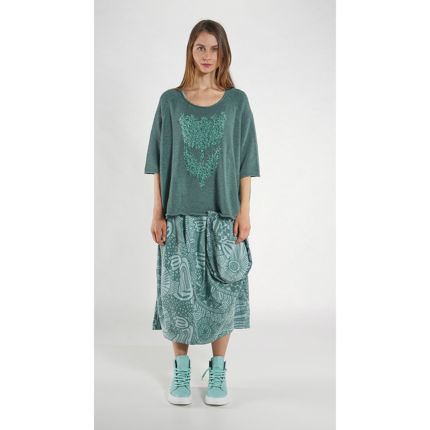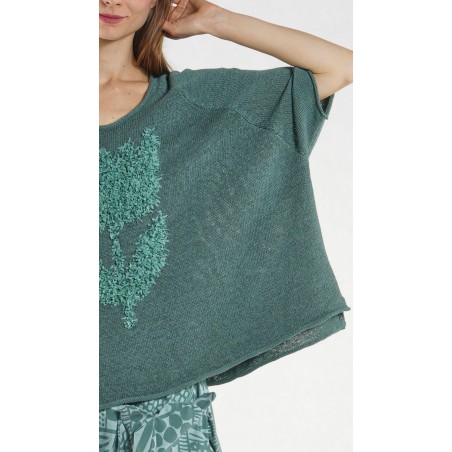 Rundholz BL uitlopende, gebreide linnen/katoenen trui met tulpapplicatie