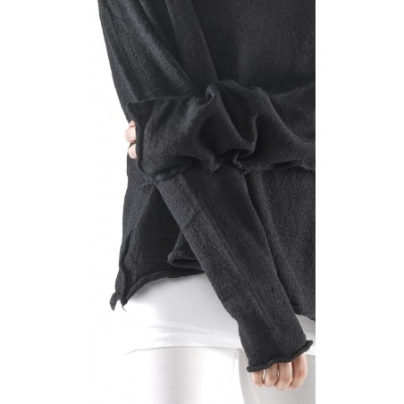 Let op: de pullover wordt getoond in de kleur inkt, maar is alleen nog verkrijgbaar in het zwart, zoals te zien is op de laatste foto.