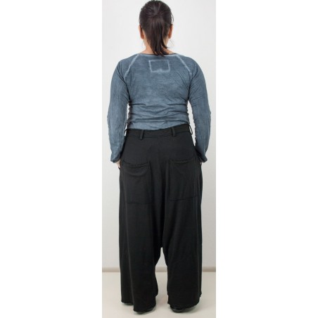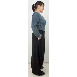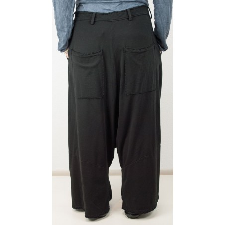 Wijde lange broek met laag kruis en 4 zakken.
