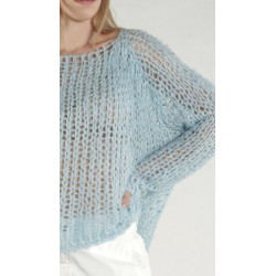 Rundholz DIP ballonvormige, gebreide lange trui van tussahzijde met raglanmouwen en een ronde hals.