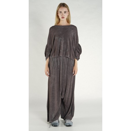 Rundholz DIP rechte, losvallende trui van katoenen crêpe met korte, speciale mouwen