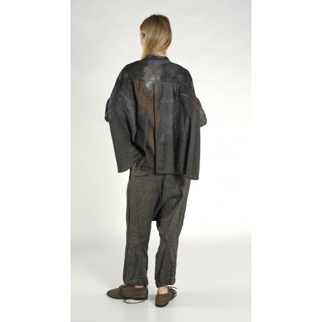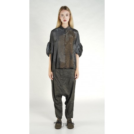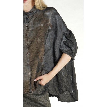 Rundholz DIP rechte, losvallende, viscose/linnen blouse met pofmouwen, een overhemdkraag en een gestikte plooi op de rug.
