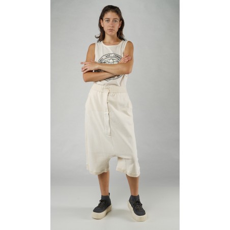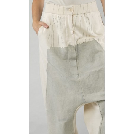 Rundholz met de hand beschilderde kuitlange raw french terry broek.