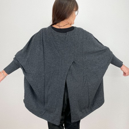 Rundholz main line merinowol oversized gebreide trui, alleen nog verkrijgbaar in granaat (rood), zoals getoond op de detailfoto.