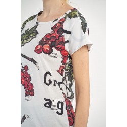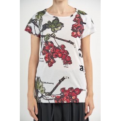 Het T-shirt is afgebeeld in fraise print (rood), maar is alleen nog verkrijgbaar in haricot print, zoals het onderstaande ballonvormige T-shirt.