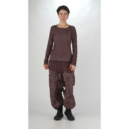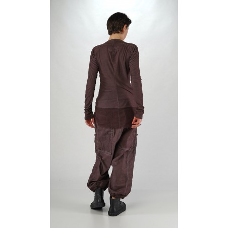 Rundholz DIP getailleerd ribjersey katoenen T-shirt met mesh rand, lange mouwen en ronde hals.