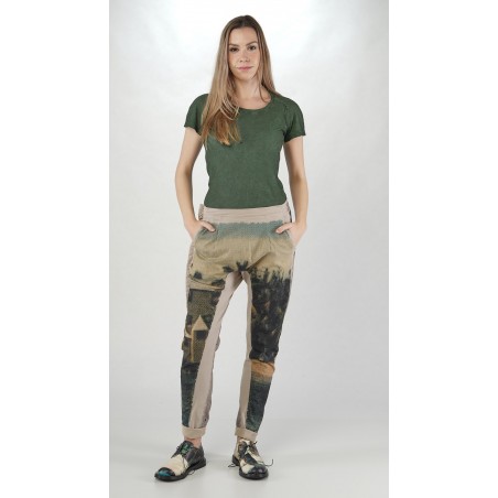 Rundholz DIP rechte, slank gesneden, katoenen stretchbroek met digitale tafereelprint.