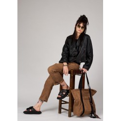Studio B3 MYRA losvallende, zacht jasje van geweven linnen en bamboe met een wax-effect coating. Het jasje heeft een knoop- en ritssluiting, een elastische taille aan de achterkant, twee zakken met ritssluiting en een licht asymmetrische voorkant.